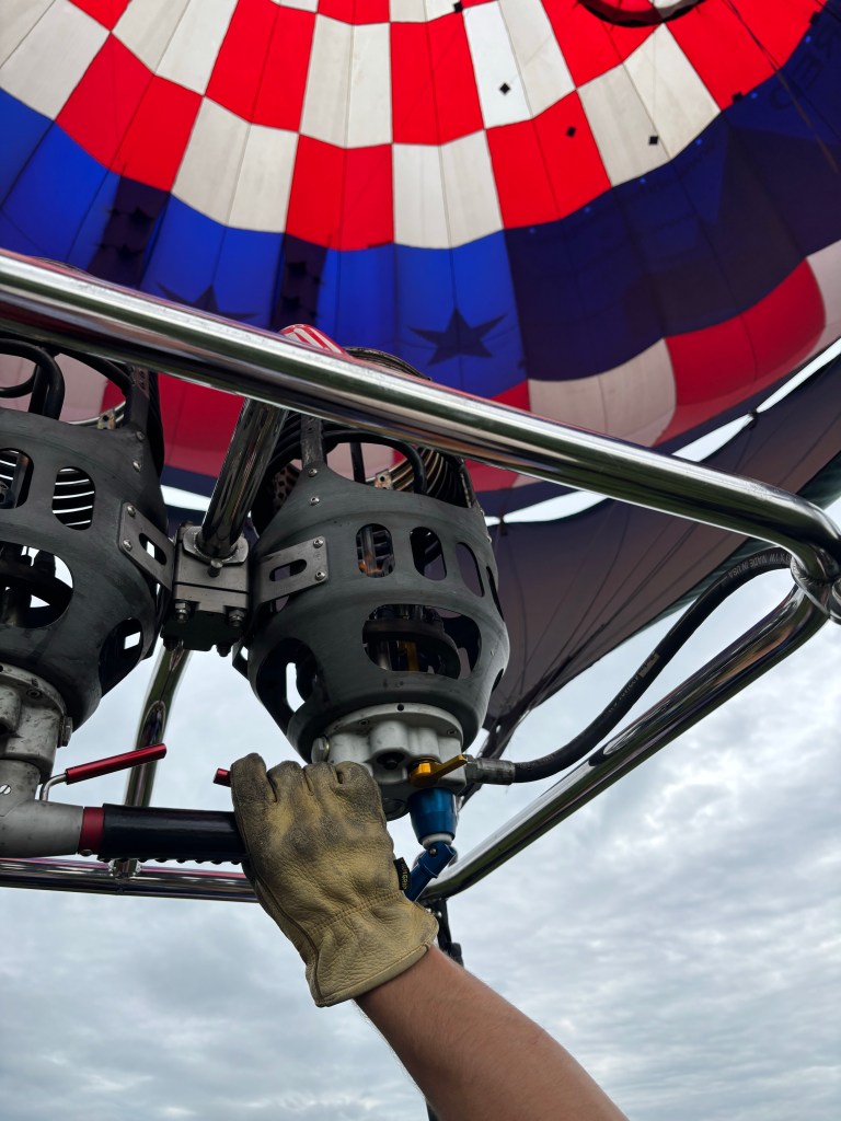Three people were already pre-loaded in the basket at this point. The rest of us scrambled in over the sides, once “Captain America” was upright.