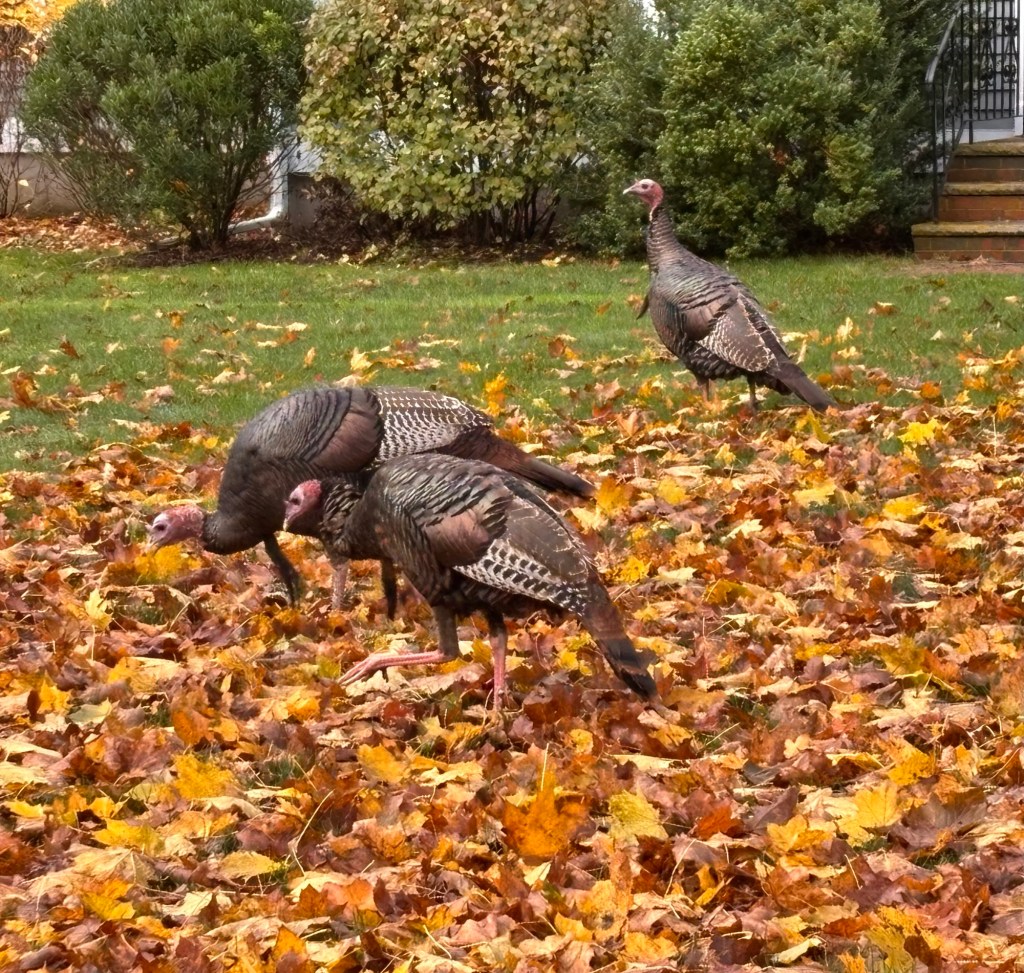 Wild turkeys in my neighborhood on Halloween day, 2025