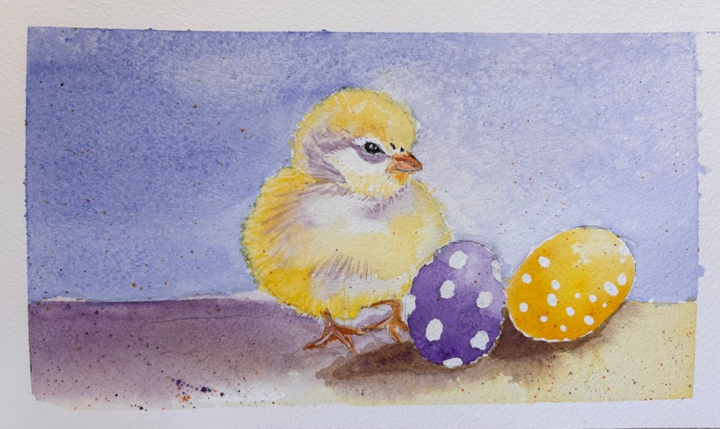 I started my 5-week class at a very nearby community arts center yesterday. I don’t like the set-up as much as the fancier arts center where I took my first watercolors class in the fall. The room is nice and sunny, but it’s quite crowded and no sinks. You have to use the restroom in the hall to get water and rinse your brushes.