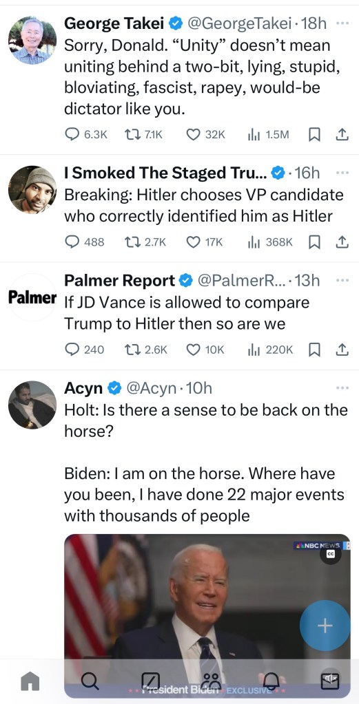 I am well aware that the daily challenges I face living in Trump’s America, as a white college-educated woman born in this country, are mostly emotional. Immigrants, journalists, scientists, poor young women in need of healthcare and many others face actual threats to their lives and livelihoods. Still, my emotional challenges are real to me. And with ANGER being the biggest one, I’m glad I discovered Twitter. It seems like venting is its raison d’être. Things that are just “too political” for Facebook can be said, and very succinctly, on Twitter. And guess what? It turns out that many other people are thinking the exact same thing. Maybe it’s true that it’s just an “echo chamber” further cementing our differences, but it’s also a relief. You are most definitely not alone in thinking whatever your thinking. Rage away people. That’s what we do now.