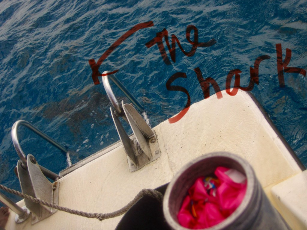 The SHARK – tiny at first, then pretty damn big when it came right up to the boat