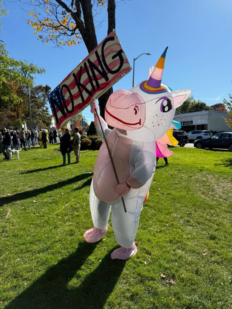 There was a small counterprotest (2 to 4 people at one end of the town green in full MAGA regalia with a Trump 2024 banner), but they were peaceful.