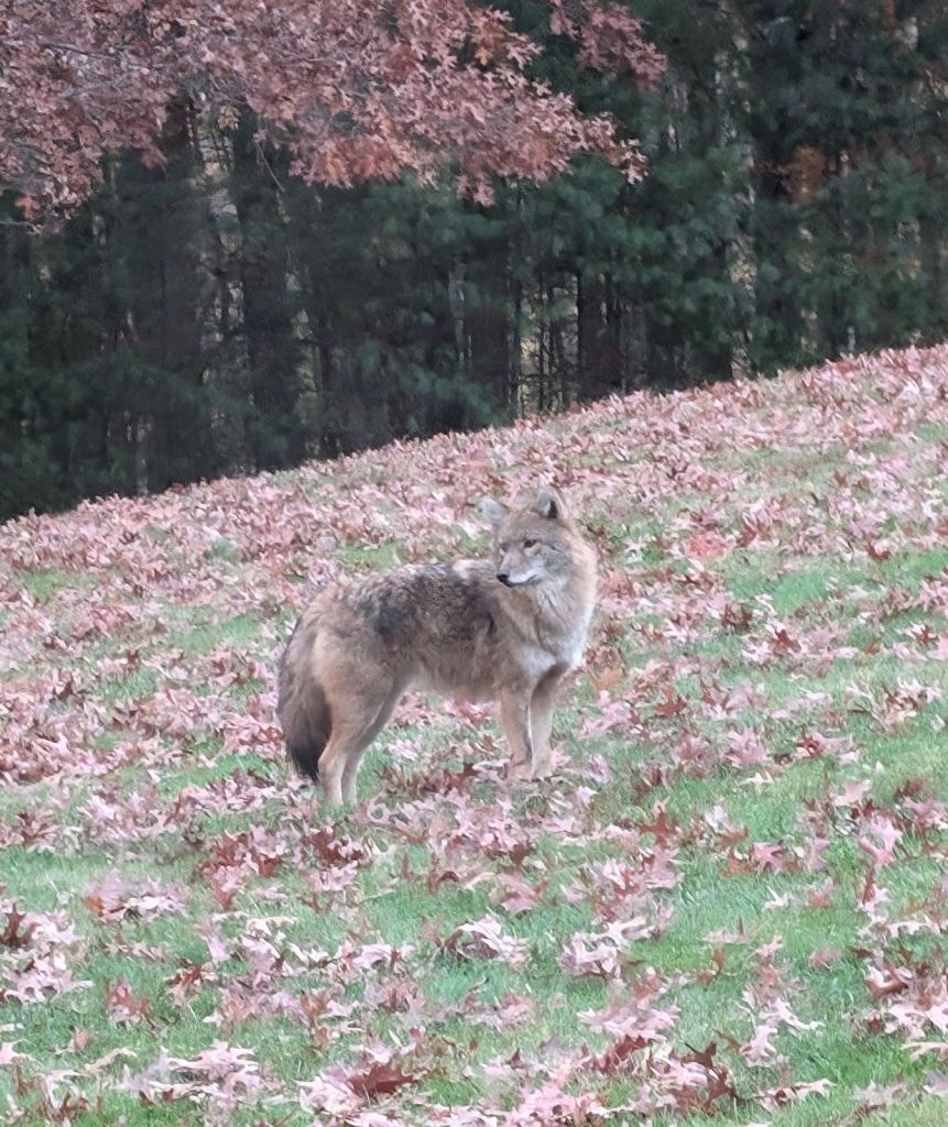 I considered my chicken problem solved when I vanquished the annoying rooster last year, but now I have a coyote problem. I was actually scared to walk home yesterday because this fellow was standing on my sidewalk, not at all concerned about being out in broad daylight. To get home, I would’ve had to walk within 30 feet of him. I called my husband to come pick me up in the car.