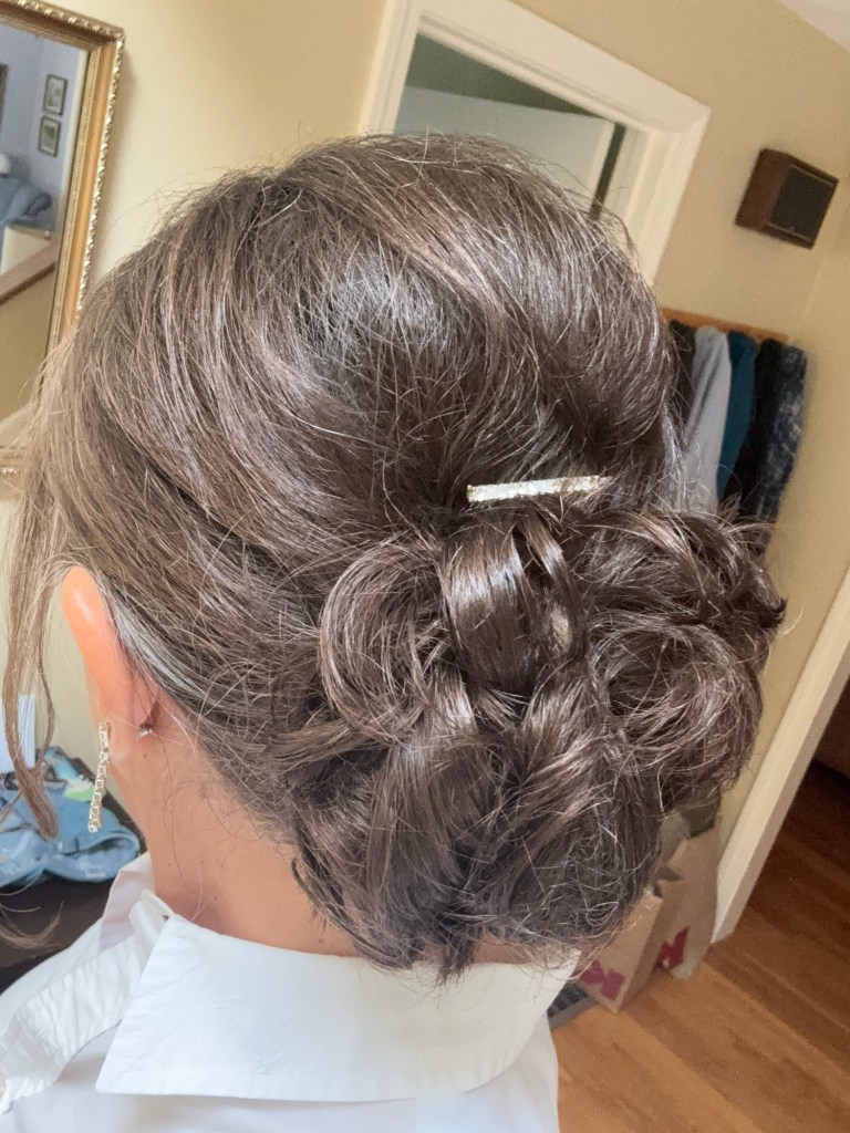 This is 60, with a fun “up do” by a local stylist who took me at the last minute when the humidity reached about 85%.